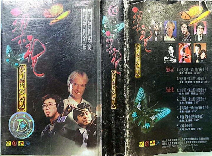 “2000年在广州街头的小摊,外公蹲在角落翻捡旧货,突然发现一盒落灰的磁带《梁祝新感觉》,京文唱片1995年发行。封面上,水墨蝴蝶与电子音波诡异交融,背面印着‘送给你属于梁祝的七种感觉,或传统或现代或东方或西洋’,外公回家仔细倾听后感觉这个磁带就是《梁祝》的七种新演绎:摇滚版、爵士版、民乐版……”