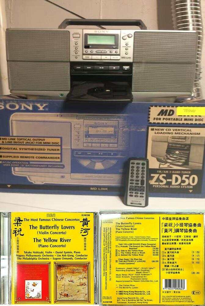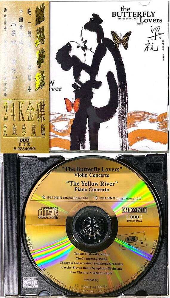 “西崎崇子是日本最优秀的小提琴家之一。她曾五次录制了《梁祝小提琴协奏曲》。1998年,当她在首届北京国际音乐节举行了电视音乐会后,中国音协为她对中国音乐作出的贡献给她授奖,同年,她在上海新建成的大剧院由上海市市长举行的庆祝音乐会上演奏《梁祝小提琴协奏曲》。我很喜欢她演奏的版本,几年前逛CD店时发现了这个金碟,买下后妥善收藏至今。”