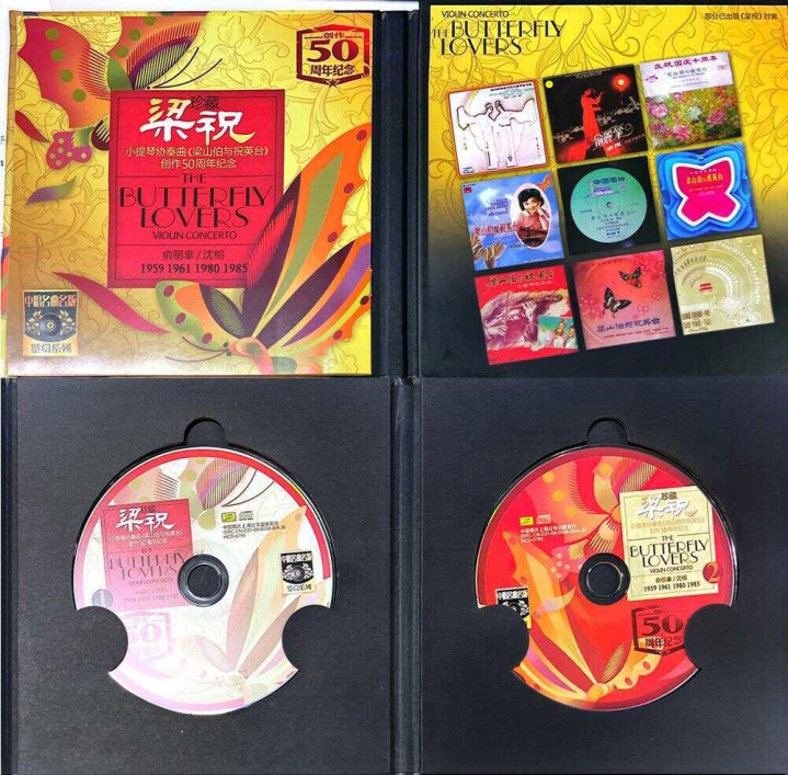 “我很喜欢何占豪先生演绎的《梁祝》,多年前我购入了《梁祝》珍藏创作50周年纪念CD,封面两行烫金小字映入眼帘:‘一对蝴蝶歌不尽千年情话四版梁祝共庆贺五十华诞’,翻开内页像是一本小册子,每一页都有惊喜,介绍了《梁祝》创作始末、《梁祝》的首演、中唱的《梁祝》录音、小提琴协奏曲《梁山伯与祝英台》赏析、谢楠点评中唱《梁祝》、弦乐四重奏。如今这张CD仍立在我的书柜上,像是某个永恒的春天,仍在数字信号的河流里,固执地化蝶。”